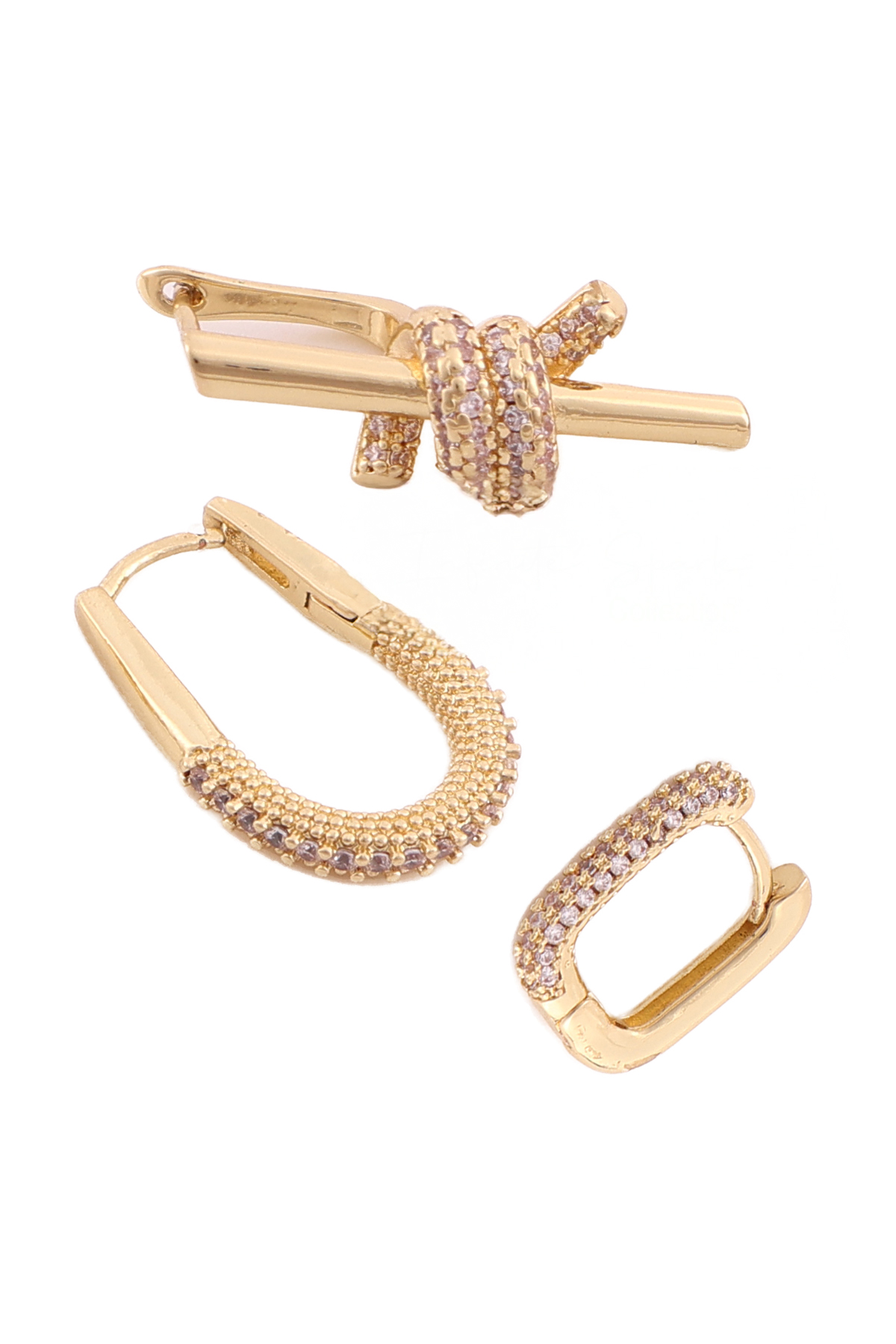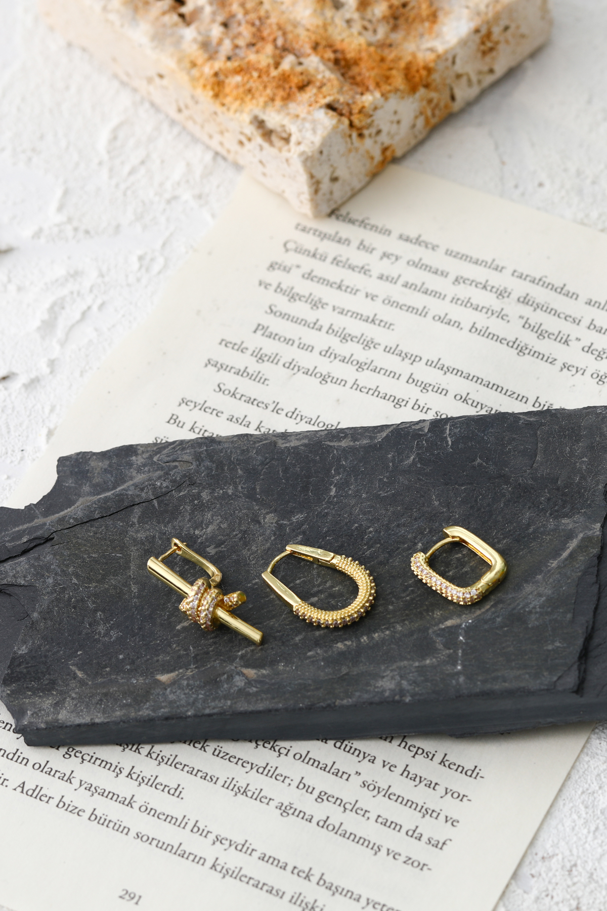 • Üçlü set: Taş detaylı, farklı boyutlarda üç küpe