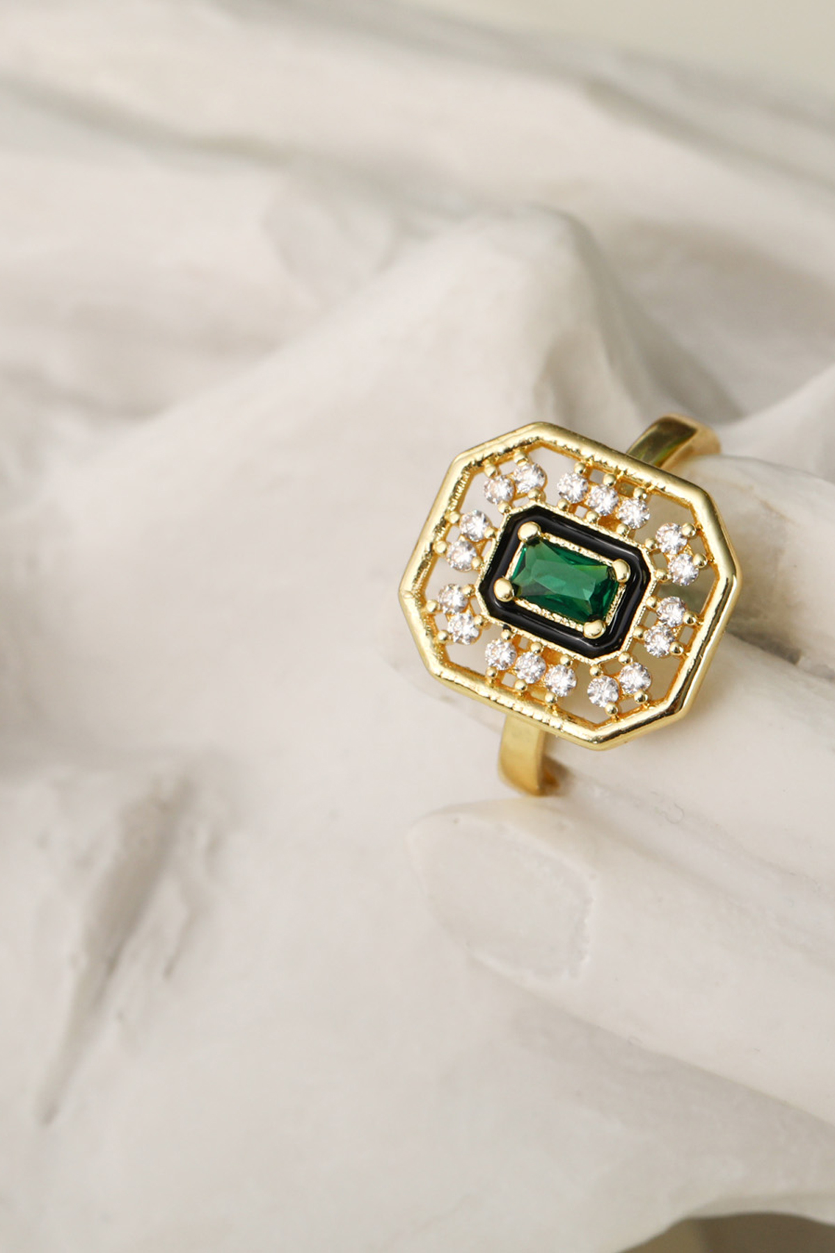 Doğanın canlı tonlarını yansıtan yeşil taşı, modern baget kesimiyle buluşturan bu yüzük, hem kendiniz hem de sevdikleriniz için şık bir hediye seçeneği olabilir.